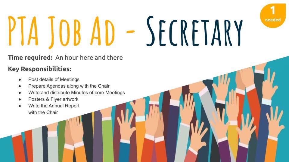 PTA AGM Poster and PTA Job Ads for a Secretary and Class Reps